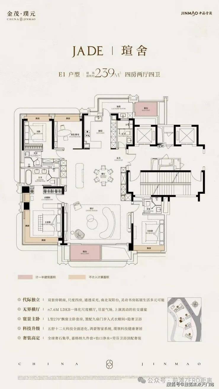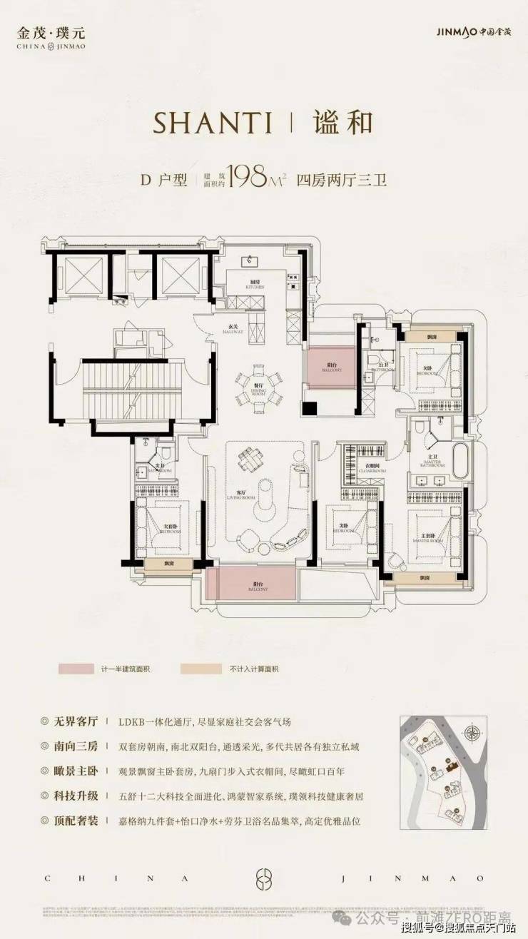 一梯一户、铸铝子母门、华为智能家居自不必多说,金茂通过 双主卧套房、独立家政间等设计,完美平衡了家庭的团聚需求与个人隐私