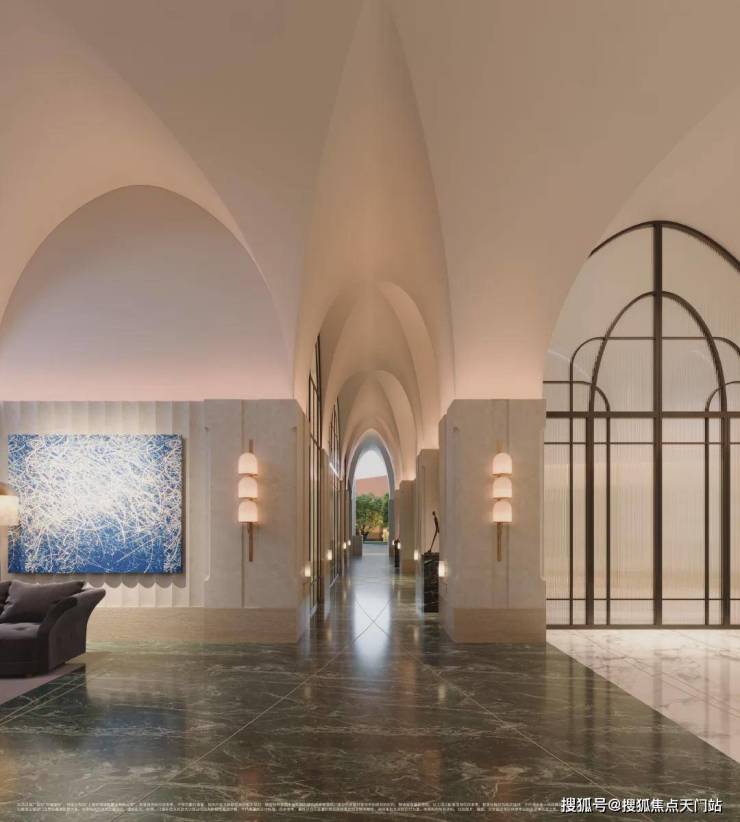 风雨连廊及印象派花园双重归家体系重新定义顶豪生活仪式,社区大门以约50米长典雅精致市政延展面宣告不凡气度!先锋艺文迎宾区仪式感十足!这便是一场城市精英到生活艺术家的精神转场。