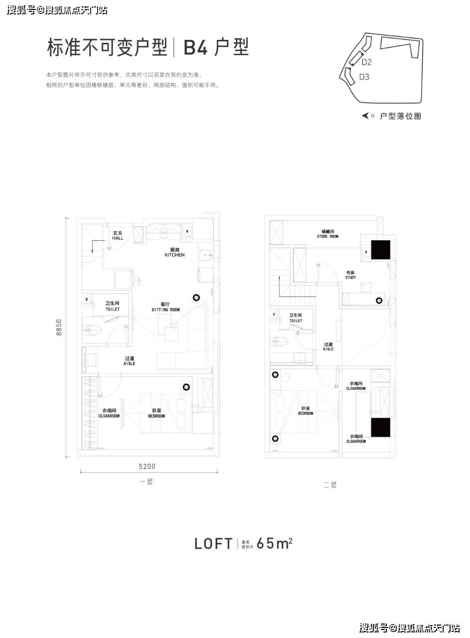 3.层高4.79米,买一层享两层,双钥匙户型设计,双倍收益,户型方正,面积段47-65方,满足投资自住双向需求。