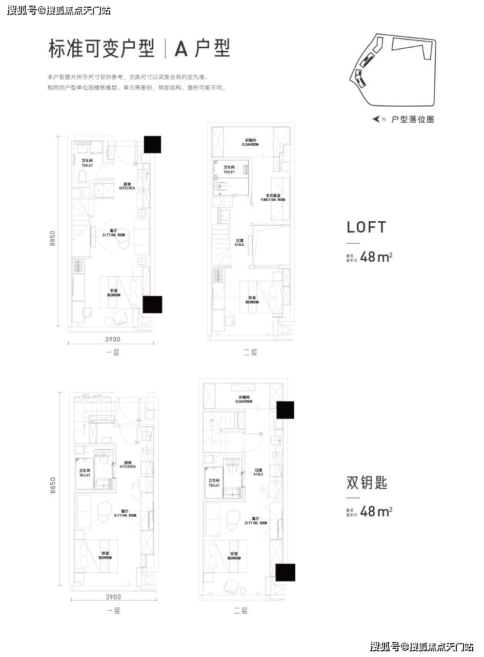 【户型】:45㎡~95㎡平层公寓,48㎡-65㎡单、双钥匙