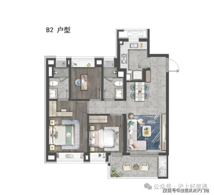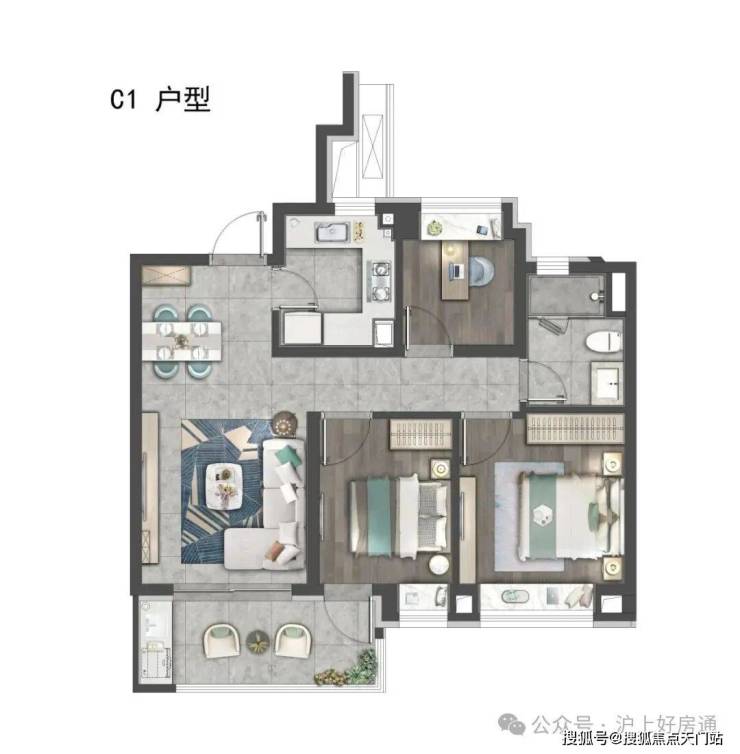 建面约105㎡为5.1米宽厅设计外接大阳台,这对黄金组合一方面撑开户内尺度,另一方面也让通风和采光俱佳。
