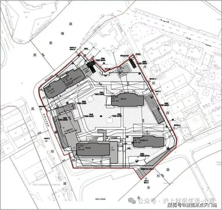 动线方面, 社区为全人车分流,机动车出入口位于东侧丹徒路和西侧高阳路上。人行出入口位于南侧的东余杭路上。