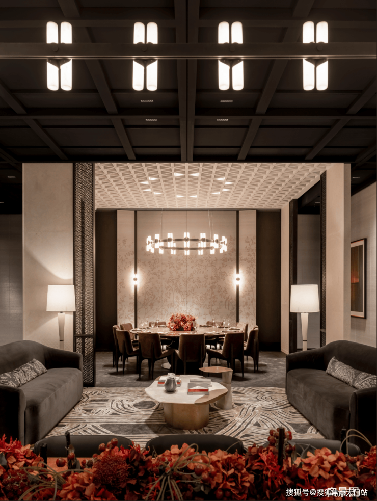 示范区的前场,作为未来归家入口承载着第一形象面的作用,跳出星空车库的局限,以中央车站,重新设计落客区域,将900㎡迎宾厅打造成开放式会客厅,业主惬意候车出行往来,无惧风雨侵袭。