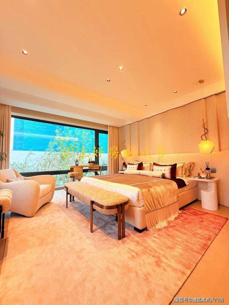 主卧拥有270度环幕飘窗,视野和采光优越,配备了高奢卫生间,空间感、尊崇感拉到顶格。