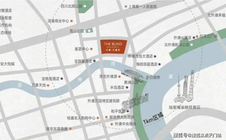 项目位于乍浦路天潼路,直线距离 上海外白渡桥仅200多米 ,是黄浦江和苏州河“源流汇聚”之处,与外滩豪景苑门对门。
