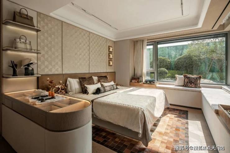 ✔270°无柱飘窗主卧:空中观景舱,晨昏光影、四季流转,躺在床上就能看完一整部自然纪录片。