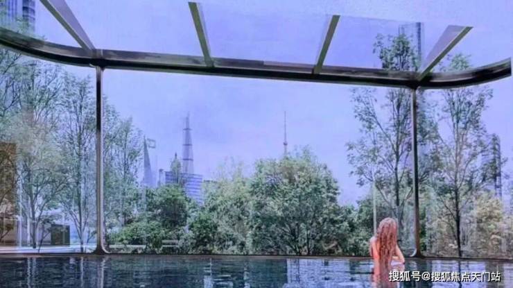 泳池周边以弧形玻璃幕墙围合,外侧可直面陆家嘴 “三件套” 与中央公园绿意,内侧能俯瞰社区内的万国喷泉与果岭草坪