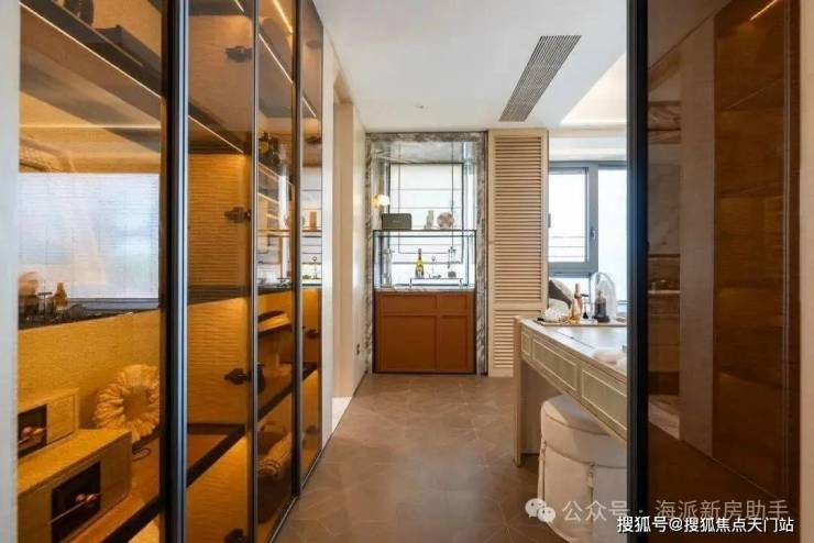 比如红酒雪茄厅,设计灵感来源于迪拜奢华酒店The Lana,颇有一种老上海风情;多功能区是一个270度水景环绕的区域,玻璃门可开可合,关上就是私密空间,打开就能亲近自然。