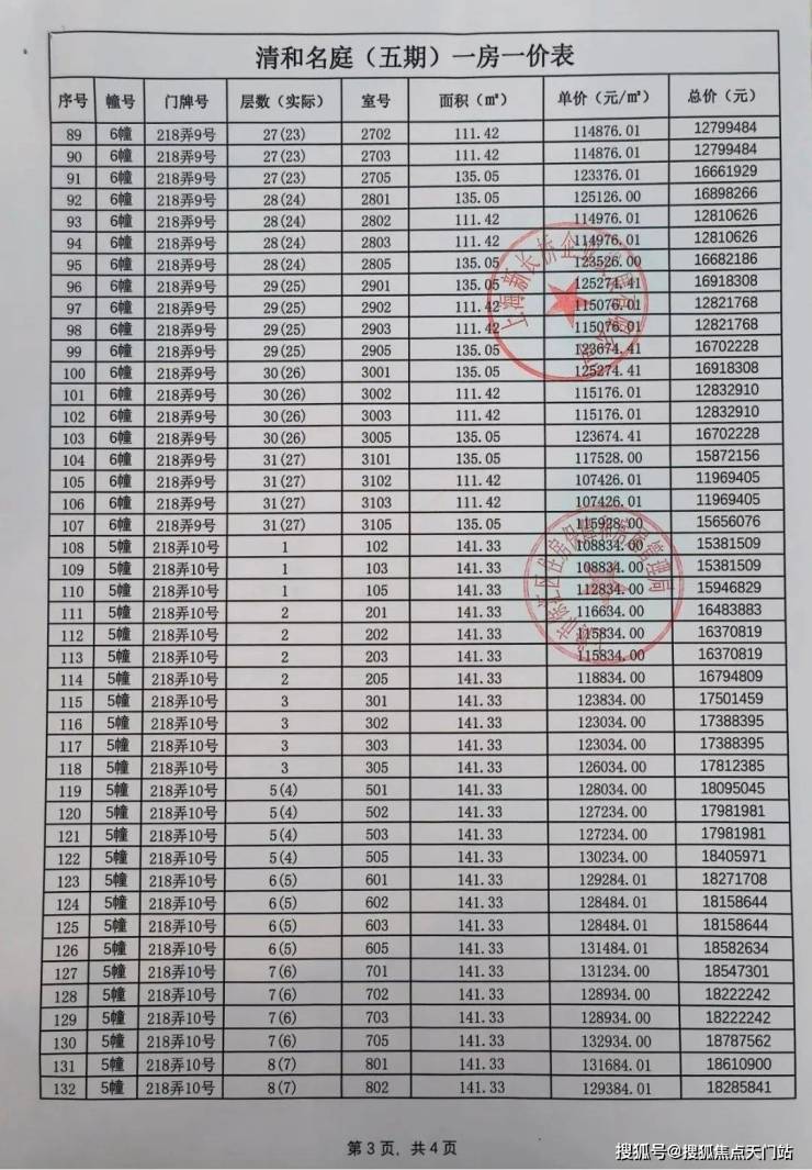 前期一房一价表公示 :