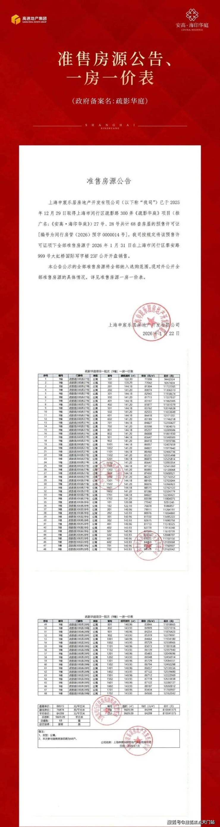 莘庄改善标杆登场!安高・海印华庭首开告捷,均价 84299 元 /㎡,推出 119-170㎡小高层 & 叠墅!
