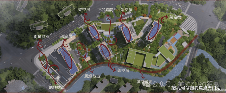 社区摒弃传统围合布局,采用南北向四排楼栋规划,既保障每栋楼的景观视野,也通过架空层如“珠光宝盒”般将零散景观有机串联。由此,业主在归家动线中,能够感受到一望无垠的视觉延展与浑然一体的归属体验。