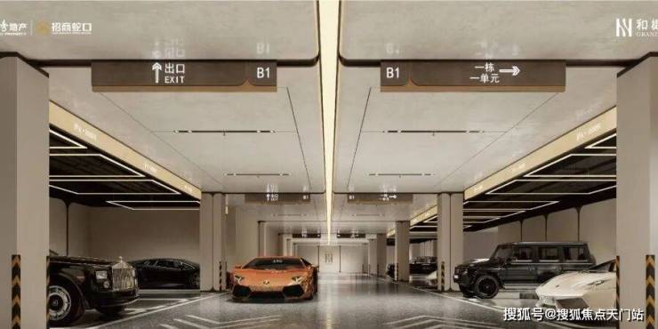 地下大堂,则以温润的白玉石材营造沉浸式归家体验。精奢车库的车行道地面采用水磨石、主体车道全吊顶设计,每个车位上方还都有LED环绕灯吊顶,让平凡的日常场景成为尊崇身份的暗语。