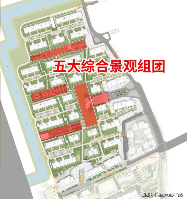 这条景观带串联起了下沉式会所、中轴大草坪、水景等一系列的景观。