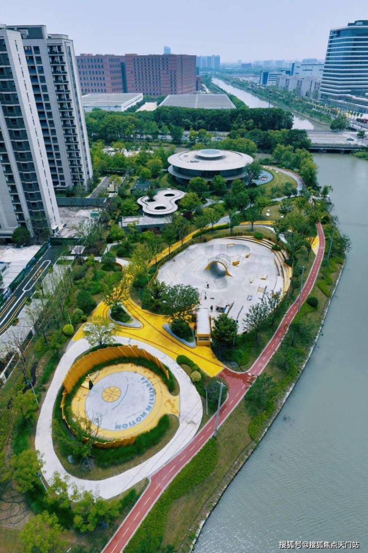 约14万方潮玩艺术公园:涵盖约2600米的滨水悦跑道、约1300㎡潮玩滑板公园、超2100㎡滨水阳光草坪、网球场、小、中、青、老各种年龄层的活力运动场地。