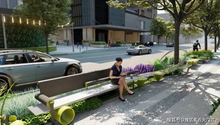 项目在街边的转角、街区的外廊,均打造 城市花园长廊, 超级绿核枢纽45度角贯穿街区, 南向出门即享由万科代建的中兴公园,公园绿意被充分引入中心广场……