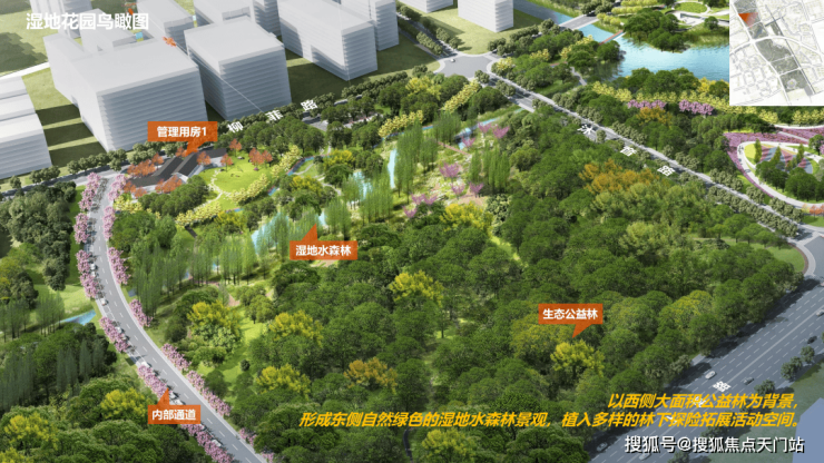 这座南三林片区的中央公园,划分为:湿地花园区、鸣湖共享区、林荫跃动区和社邻园艺区,四大功能分区。嵌入人性化和生态化的设施,激活场地引人入园,构建市民休闲化的游憩绿地。