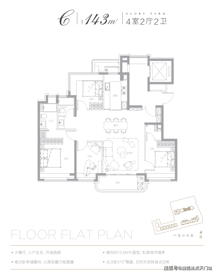 我们以已经开放样板间的建面约143㎡户型为例:
