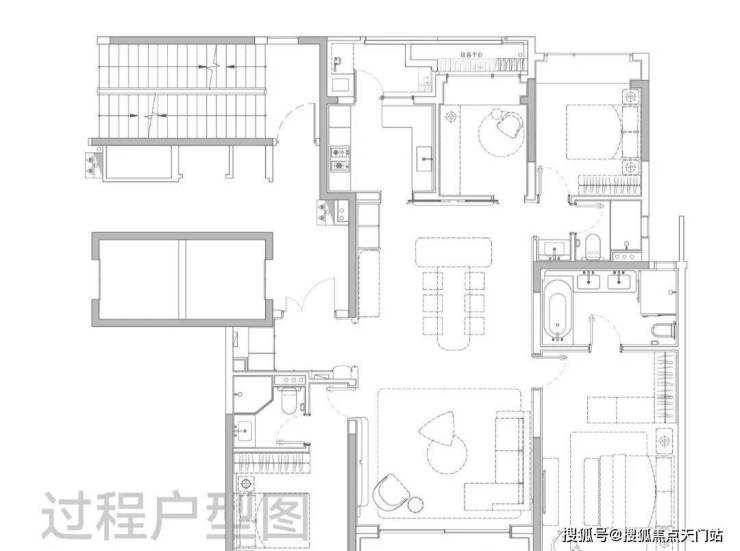 主卧配置步入式衣帽空间、双台盆+大浴缸主卫。