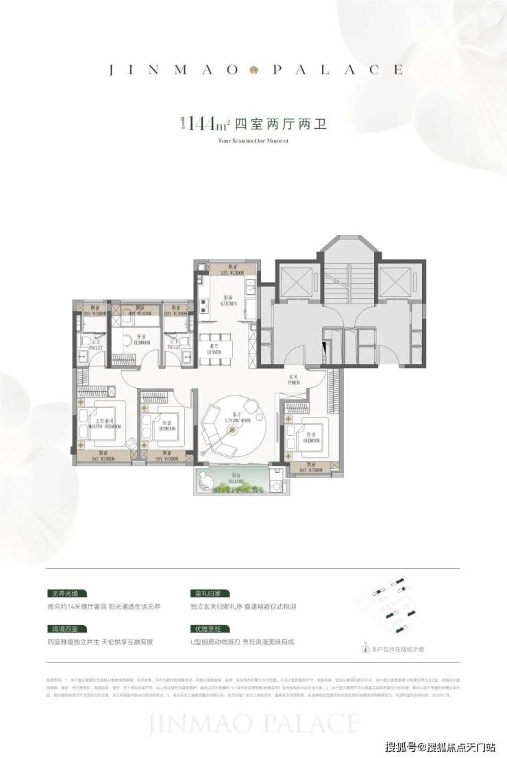 建面约 144㎡4房:同价格在杨浦只有百平米3房可选。