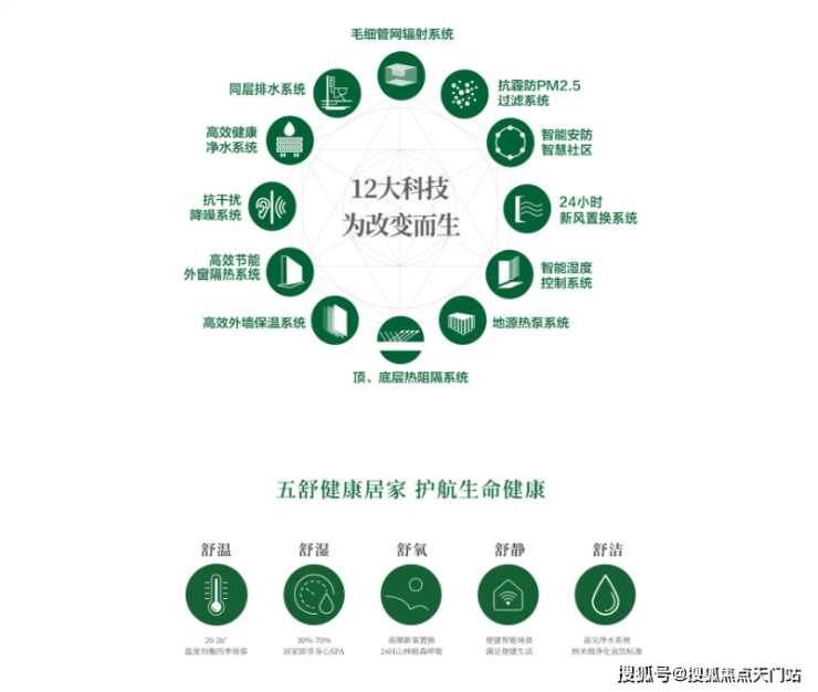 但作为金茂府系3.0迭新作品, 江湾金茂府将金茂引以为傲的「12大绿金科技」进一步优化,升级为 更节能、更安静、更安心的“五舒科技系统” 。