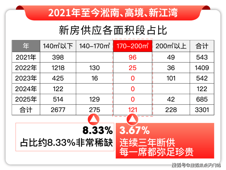 江湾金茂府约190㎡终极改善大宅,更是区域内 连续3年断供,近5年供应占比仅约3.67%的稀缺供应!
