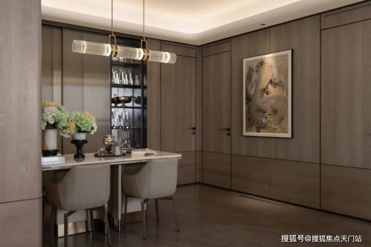与常规新房室内没有门与墙的生硬拼凑感不同,江湾金茂府通过大量木饰面、隐藏门等细节,形成统一的设计语言,色彩与材质搭配协调统一,尽显整体美感!