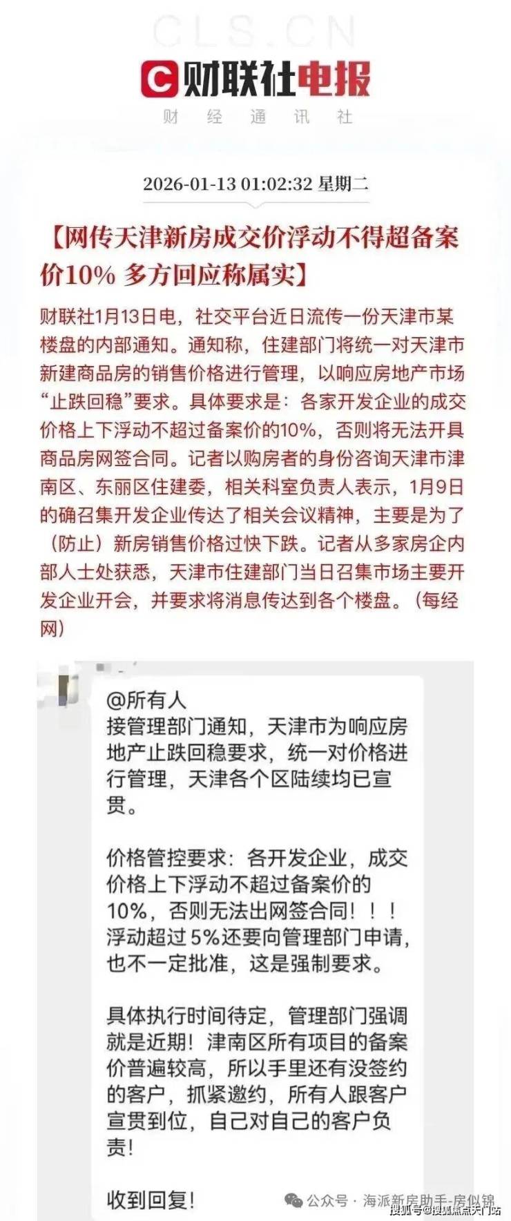 近日,发布限跌令首城诞生,天津发布:新房价格浮动不得超备案价10%,否则不予网签