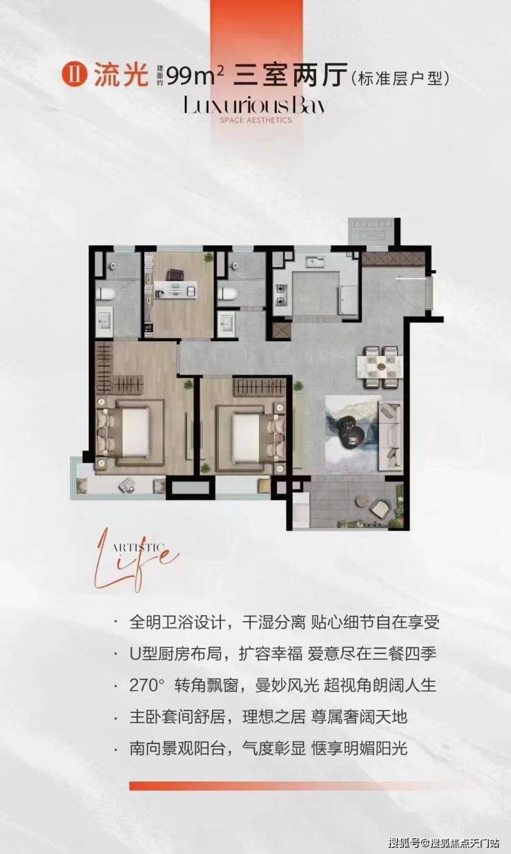 建面约99㎡3房2厅2卫