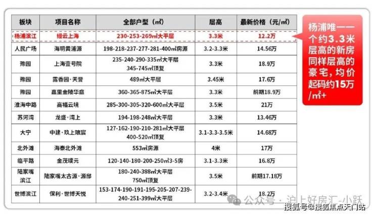 而同样层高的顶级豪宅们,起码都在约15万+的房价水平,但缦云上海的均价仅约12.2万/㎡。