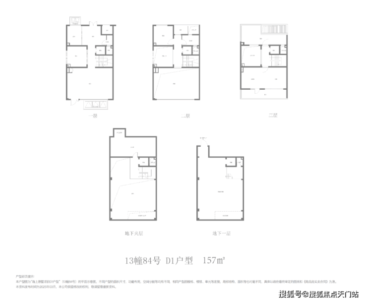 项目主力有建面约158㎡、165㎡联排别墅户型, 地上三层+地下空间,设置地下采光井+星空露台等,真正做到了 独门独户、有天有地、超享空间!