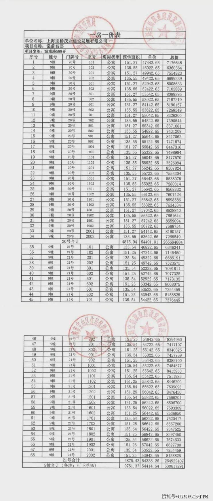 最新一房一价表: