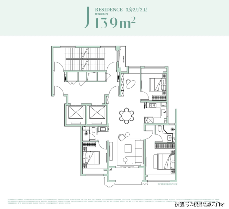 该户型是经典的四叶草布局,四开间分布在四角,兼顾私密与互动,是二胎家庭的优选;