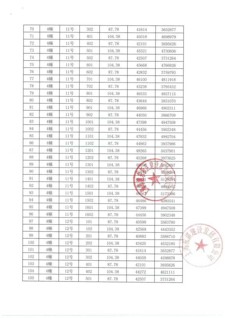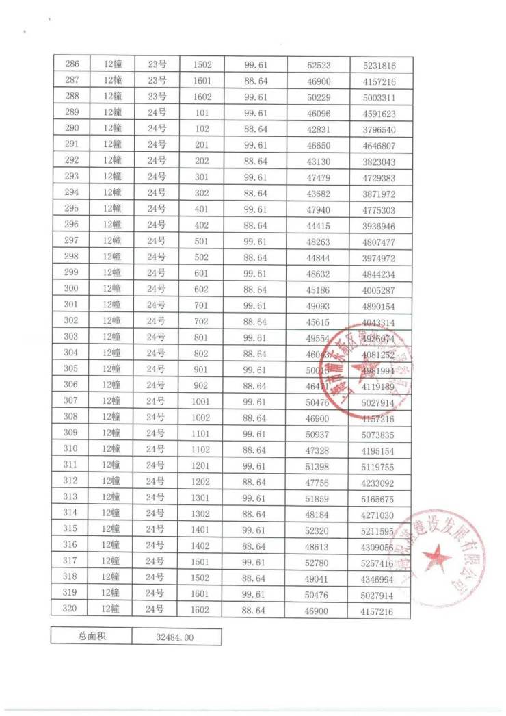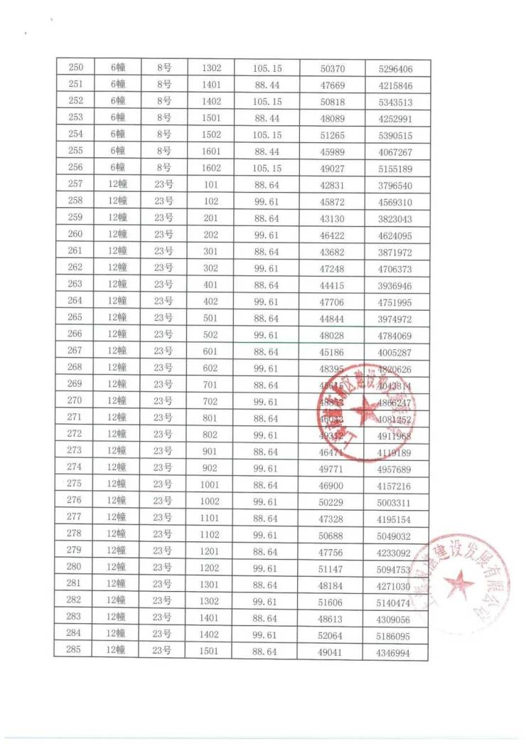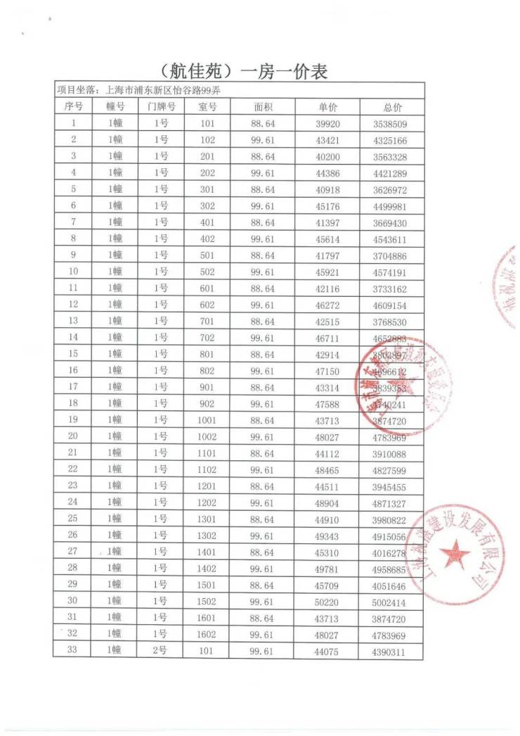 项目一房一价表