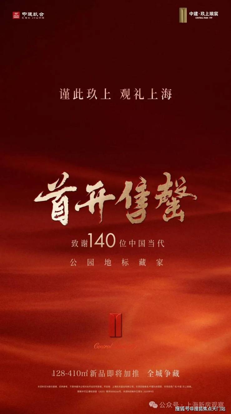 最新消息!大宁公园对面,1/20号线地铁口,中建玖合静安大宁项目案名为【中建玖上琅宸】少量建面约128-410㎡当代公园地标作品!均价14.68万/㎡,总价1436万起!280㎡美学样板间开放,公园豪宅迎来顶藏之作!还有折扣优惠惊喜+5万车位劵!售楼处线上火热预约中!