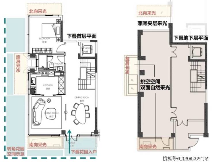 在这个立体空间体系中,摒弃了叠加别墅中资源更加集中在下叠、而忽略上叠居住尺度的传统设计,而是做到了史诗级的创新,实现真正的 平权 ——