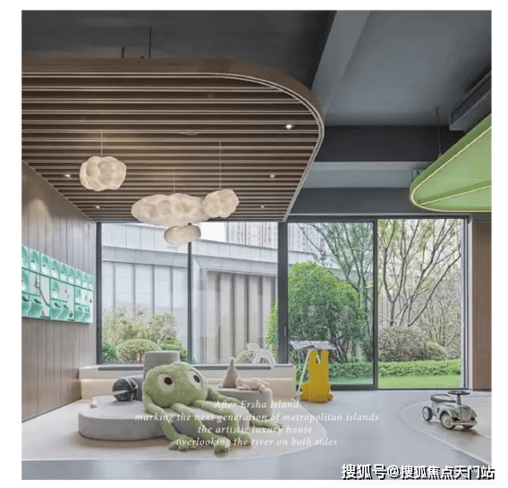 除了自然的艺术感围绕,社区还以"共享、共融、共生"为核心理念,打造4大主题架空层,为生活带来松弛的社交日常。