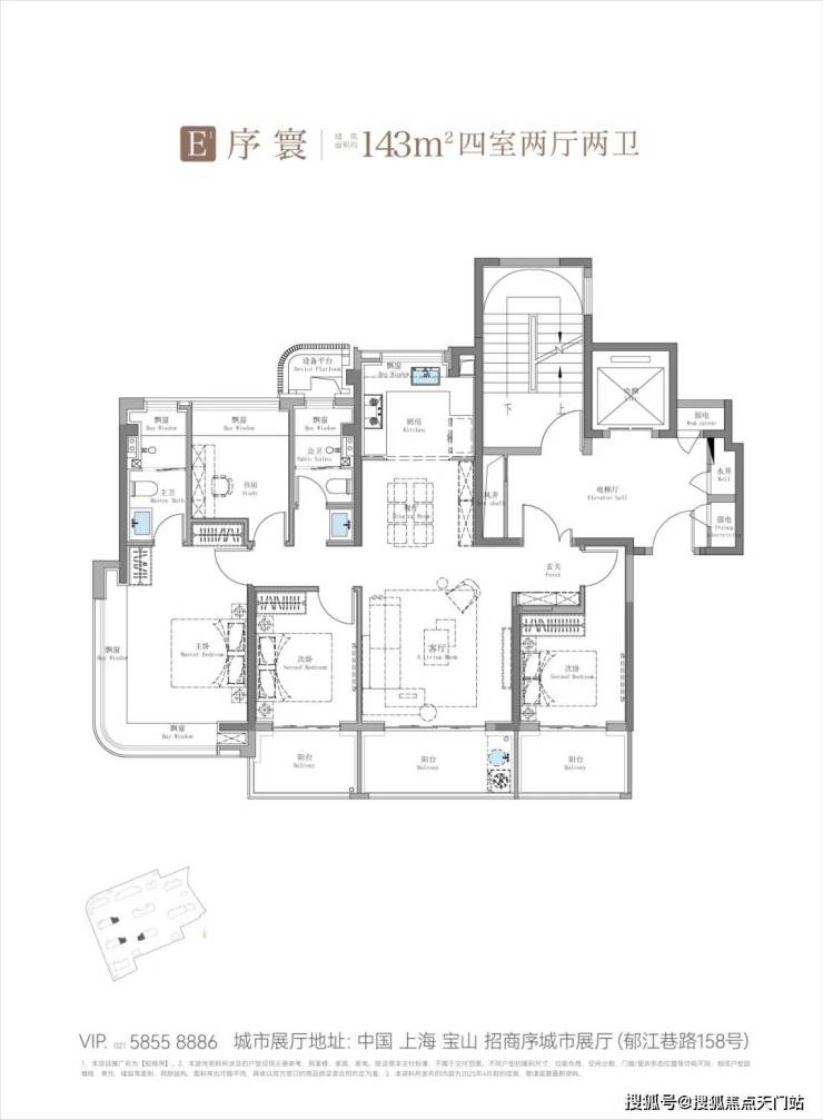 以建面约143㎡四房户型为例,招商序创新性地打造了"三阳台+270°转角飘窗",将南阳台面积拓展至约18㎡,足足比常规产品多出约7-8㎡,相当于多出一个单人卧室的空间。要知道,传统140㎡户型通常只能做到双南阳台或长开间阳台,面积约10㎡左右。