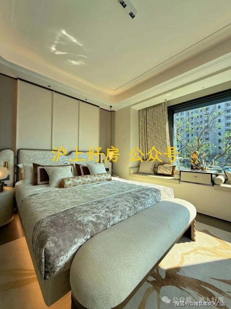 主卧更别出心裁地设计了 两大270°转角飘窗 , 在同面积段产品中实属罕见,瞬间将睡眠区的景观层次与奢华感拉升到新的高度。