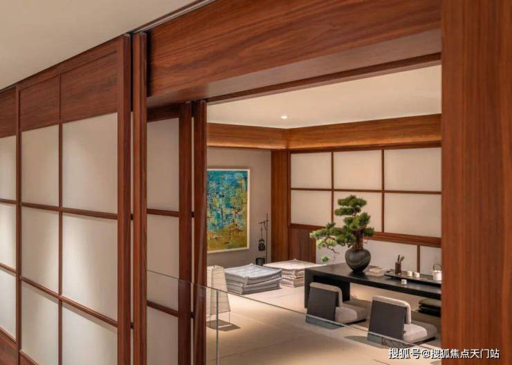 在'町屋'后方,是一个墙面和天花板都覆盖金箔的'金吧'。在这里,我们重新引入了一些当代西方设计语言——大理石地面图案、蛋形吧台和墙面护板细节。这些元素与醒目的红色高光烤漆柜相互平衡。天潼198售楼处预约热线:400-118-3159☎️☎✅✅✅《售楼处已认证》