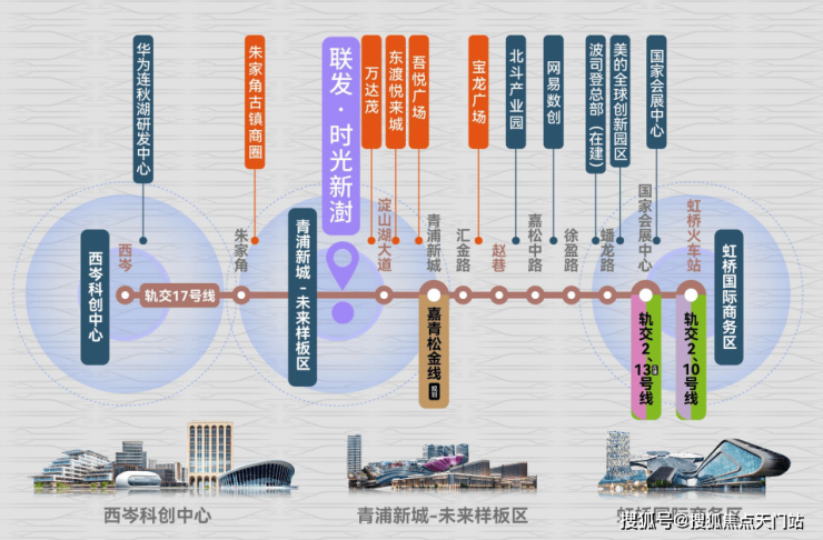 展开地图,可以看到 从联发·时光新澍出发,3站华为、4站市西软件园、8站虹桥商务区,直接锁定三大高能级产业价值,未来发展空间可想而知!
