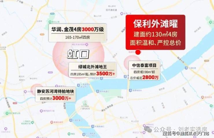 虹口华润和金茂新项目,单价预计15.5-17 万/㎡,四房起步165平,总价奔3000万级;杨浦内环中信泰富项目,四房面积或180平起步,总价预计近2800万;静安苏河湾的地块,未来四房总价妥妥3000万以上。