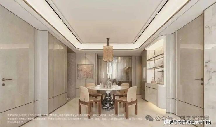 首先,传统户型中约8-15%的走廊面积被彻底释放,并入客厅、餐厅或房间,加上了大量的附赠空间,整个户型实现近乎100%的面积有效利用。其次,在“飞机户型”带来的无过道优势中,一个最直观的体现便是 “宽绰餐厅”的实现:它不仅容纳常规长桌,更能轻松置入一张 小圆桌