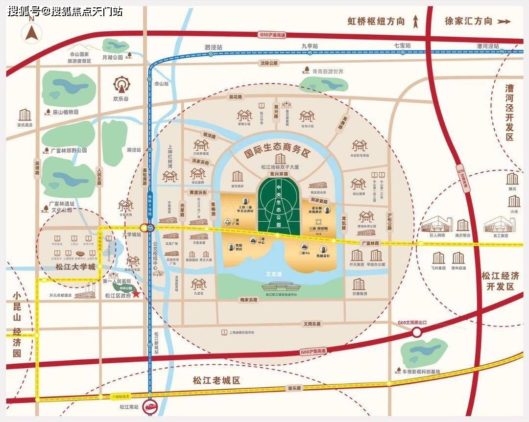 项目地处松江新城核心,G60科创走廊起点,以高瞻远瞩之魄力,定鼎城市生态封面。 抢占松江经济命脉:周边有49家世界500强,64家上市公司,500余家外资企业