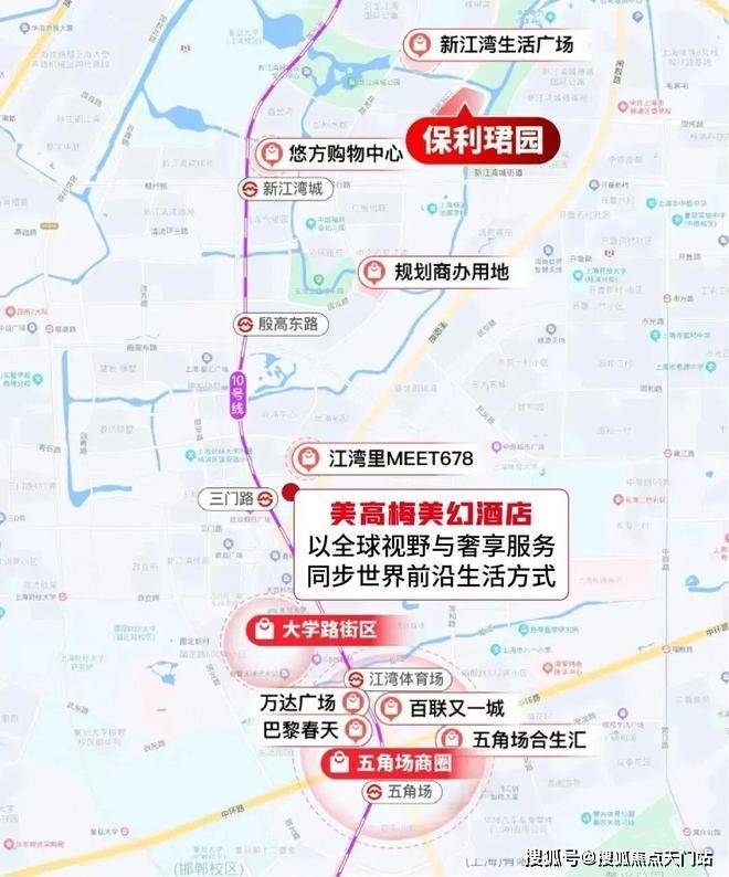 ① 繁华商业:周边环绕江湾里MEET678、五角场商圈、大学路等五大商圈,已官宣入驻的美高梅美幻酒店将同步世界前沿生活