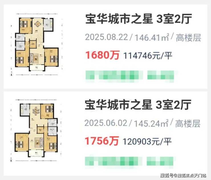 而周边的标杆次新宝华城市之星,近期146㎡3房成交总价约1700万,折合单价约11.5万/㎡。