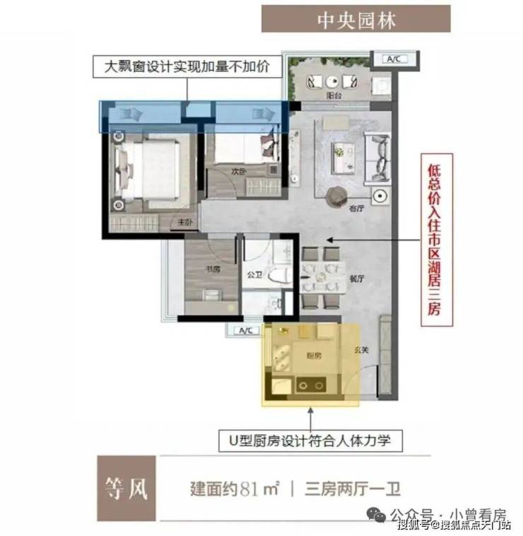 特点:低总价三房,望园林花园,大飘窗设计增加居住舒适度
