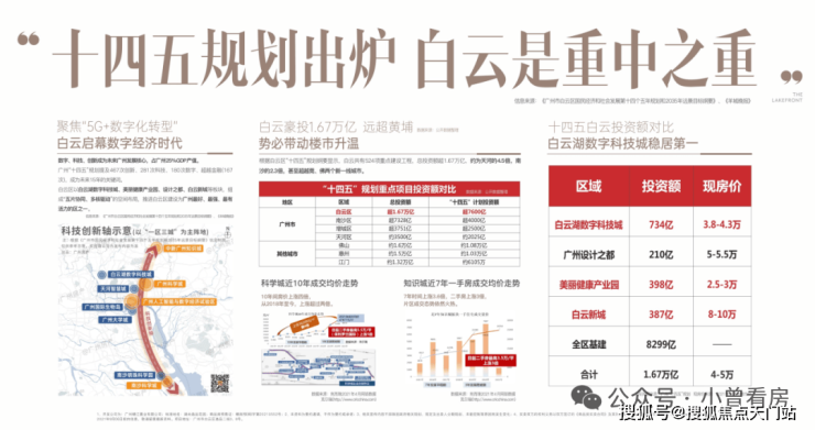白云湖数字科技城,是作为广州市重点发展产业集群区域、全白云区投资额NO.1,白云湖数字科技城投资超过3500亿元,524项重点项目,超1500家高新技术企业落地于此,总规划面积28平方公里,4倍珠江新城,主城区规划最大的新城!引进约41万人才,百度智能云、力合科创、中关村信息谷,哈工大等企业龙头争相进驻白云湖数字科技城,将打造1000亿产值高地。