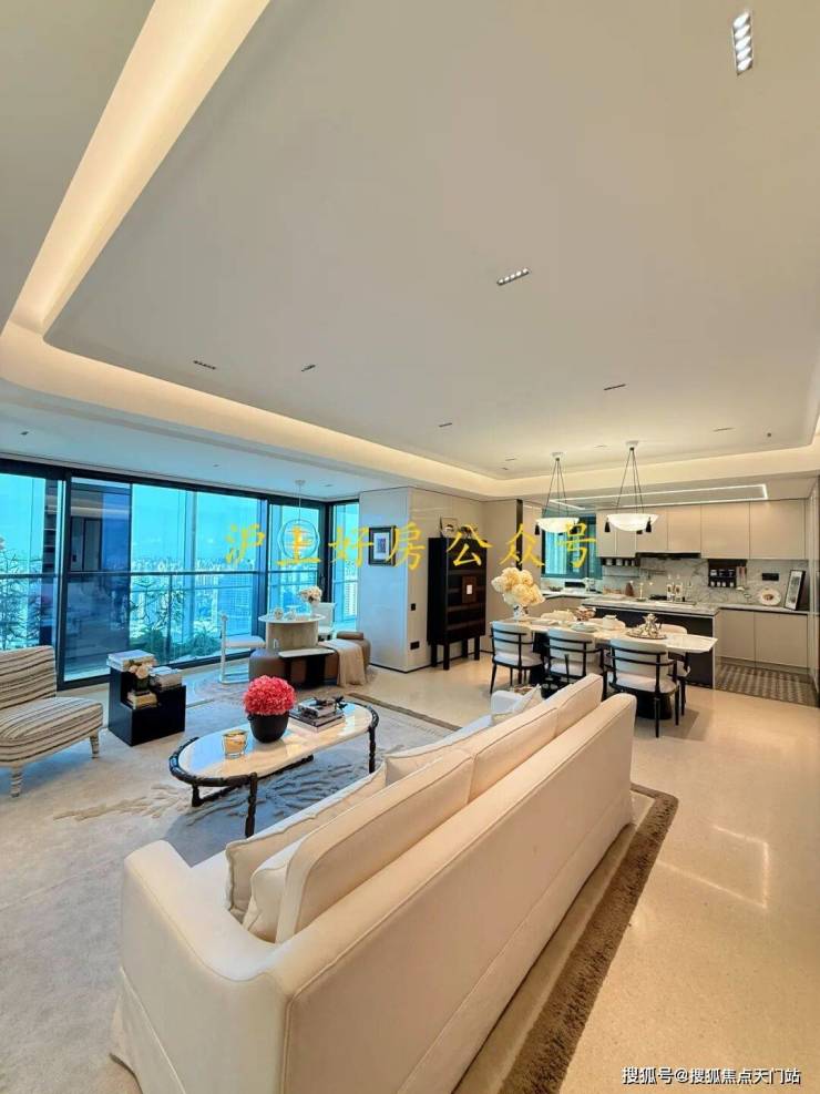 客厅以超大尺度惊艳亮相,若打通北向X空间,可拓展为约90㎡超级厅堂,家族宴请or高端社交,皆能轻松承载;约 270°环幕视野 将采光与观景效果推向极致,中高楼层可眺望陆家嘴三件套。