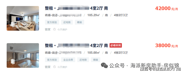 产业与配套的大爆发,首先冲击的肯定是响应时间较短的租房市场,据链家网显示,目前徐泾的4房大户型最高能租到近4万/月,1年的租金就逼近50万!