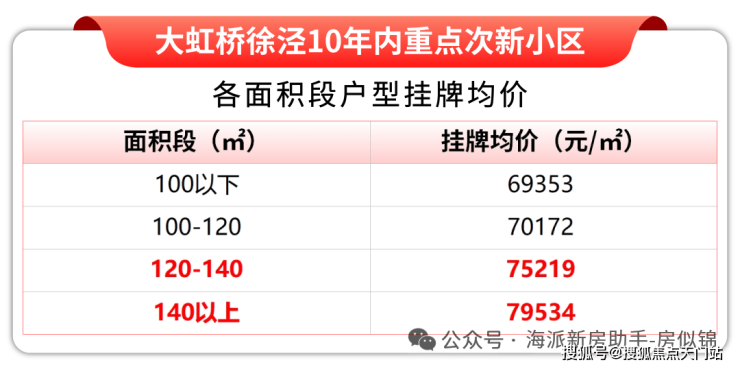 据链家网最新挂牌数据显示,目前徐泾10年内次新重点小区100㎡以下户型挂牌均价已经跌破7万/㎡。但140㎡以上的大户型却仍然有近8万/㎡的挂牌均价,溢价小户型近15%!